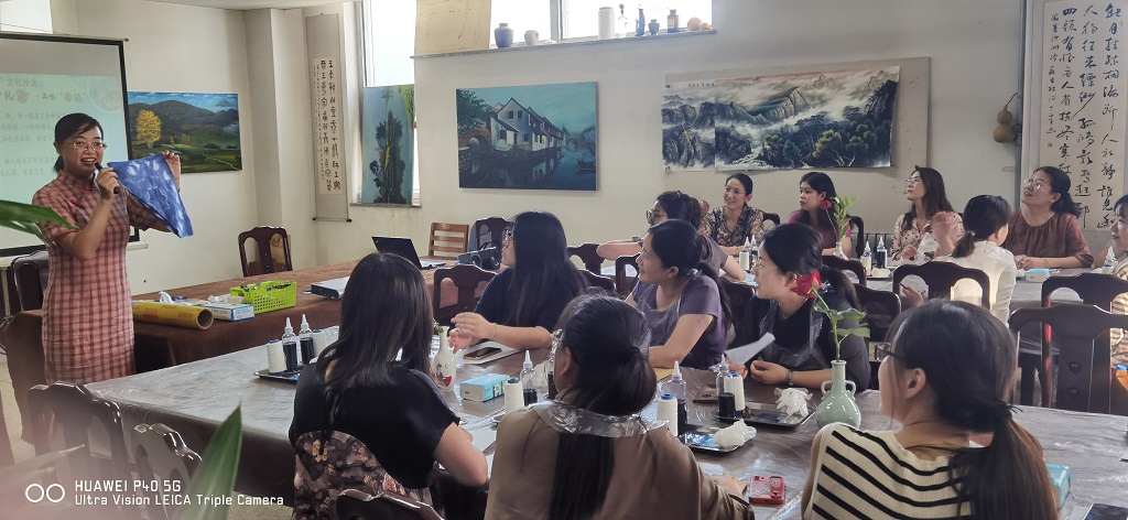值第39个教师节来临之际,为进一步丰富教职工的文化生活,更好地传承和弘扬黄河文化,9月5日下午,红宝石9999hbs第二期“云雅阁”文化沙龙“邂逅扎染•品味非遗”手作活动在古籍艺术书库成功举办。校工会主席周吉福出席活动,30余名教师参加了本次体验。